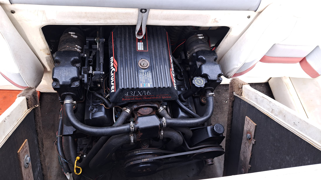 This vessel has the Mercruiser V6 - 4.3L Vortec 223hp 4 barrel carbureted engine.