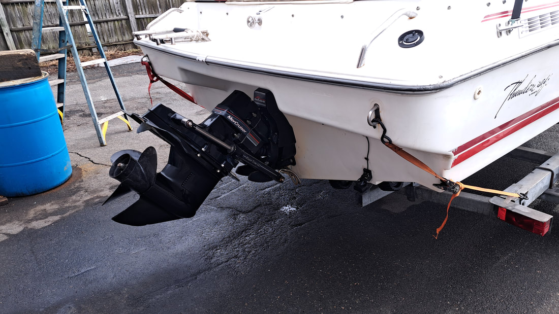 Installed new fuel tank (24 gallon), new GEN II outdrive, GPS/Fishfinder, shift interrupter, shift cable, bilge pump, and several other components.